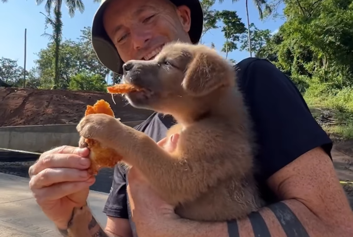 Among the many dogs encountered through Happy Doggo’s work, one small brown puppy stood out. Known as Twix, he was first seen as a fluffy street pup in Thailand. A video shared by @wearehappydoggo showed Harbison holding the young dog during an early rescue moment.